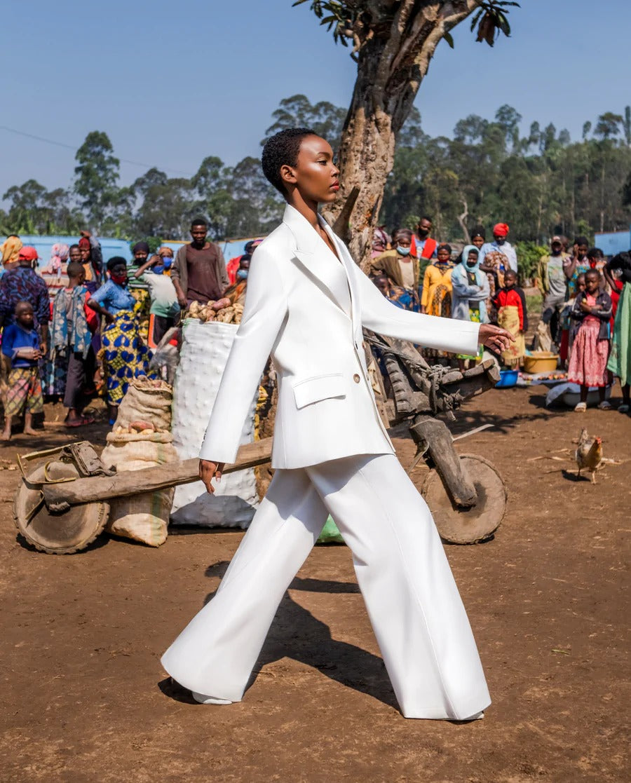 Like all good things, it started with a conversation. “When I met Maryse [Mbonyumutwa, Asantii founder], she told me about how she was building a brand with African soul and made in Rwanda so I was excited to be part of it by creatively directing Asantii’s first photo shoot and film,” Mizero explains of the visual series he shot with photographer Chris Schwagga. “It was a beautiful experience. We had five days of shooting in the mountains and for me, it was about showing how we as people hold the light within us as the sun comes up.”